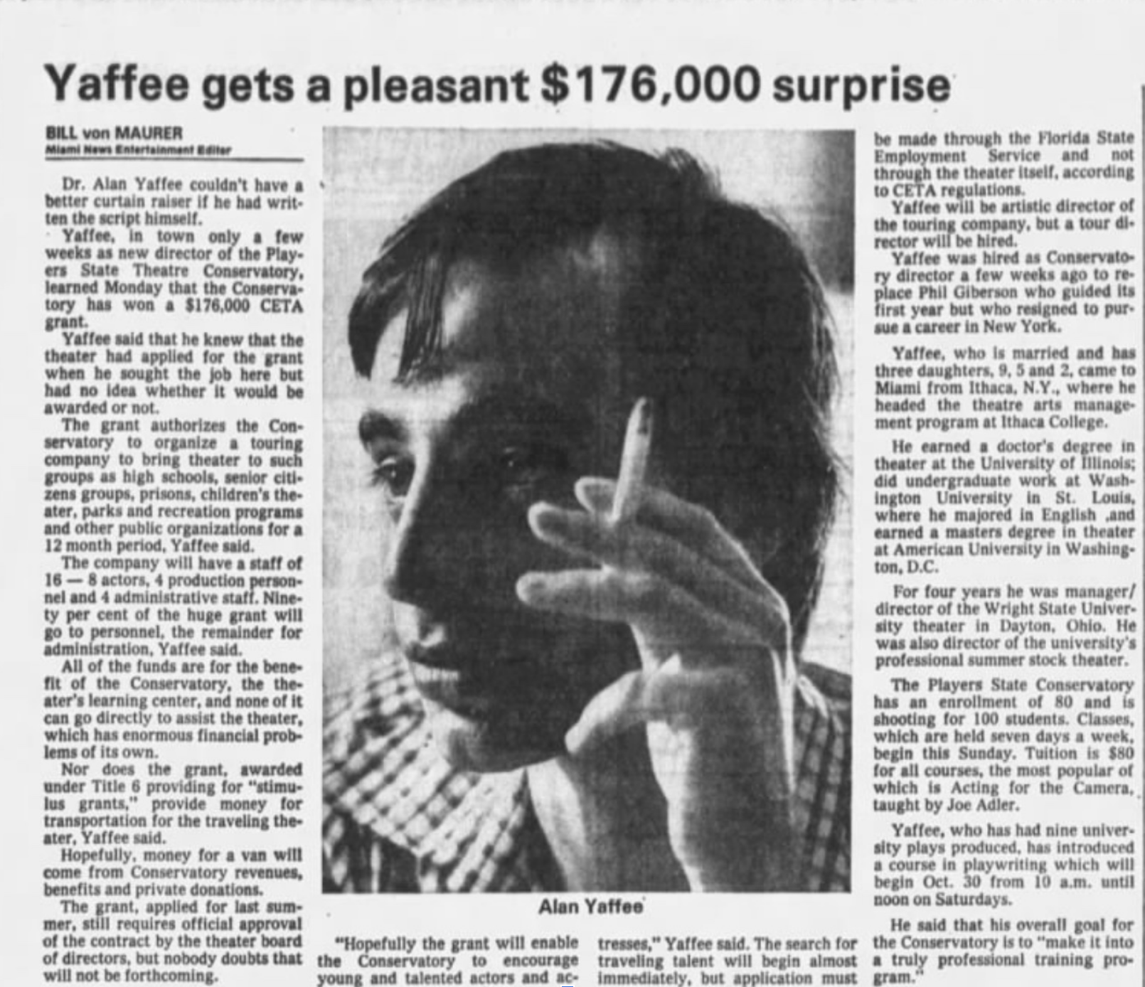 An article describing the Players State Conservatory, excerpted from The Miami News, September 20, 1978.