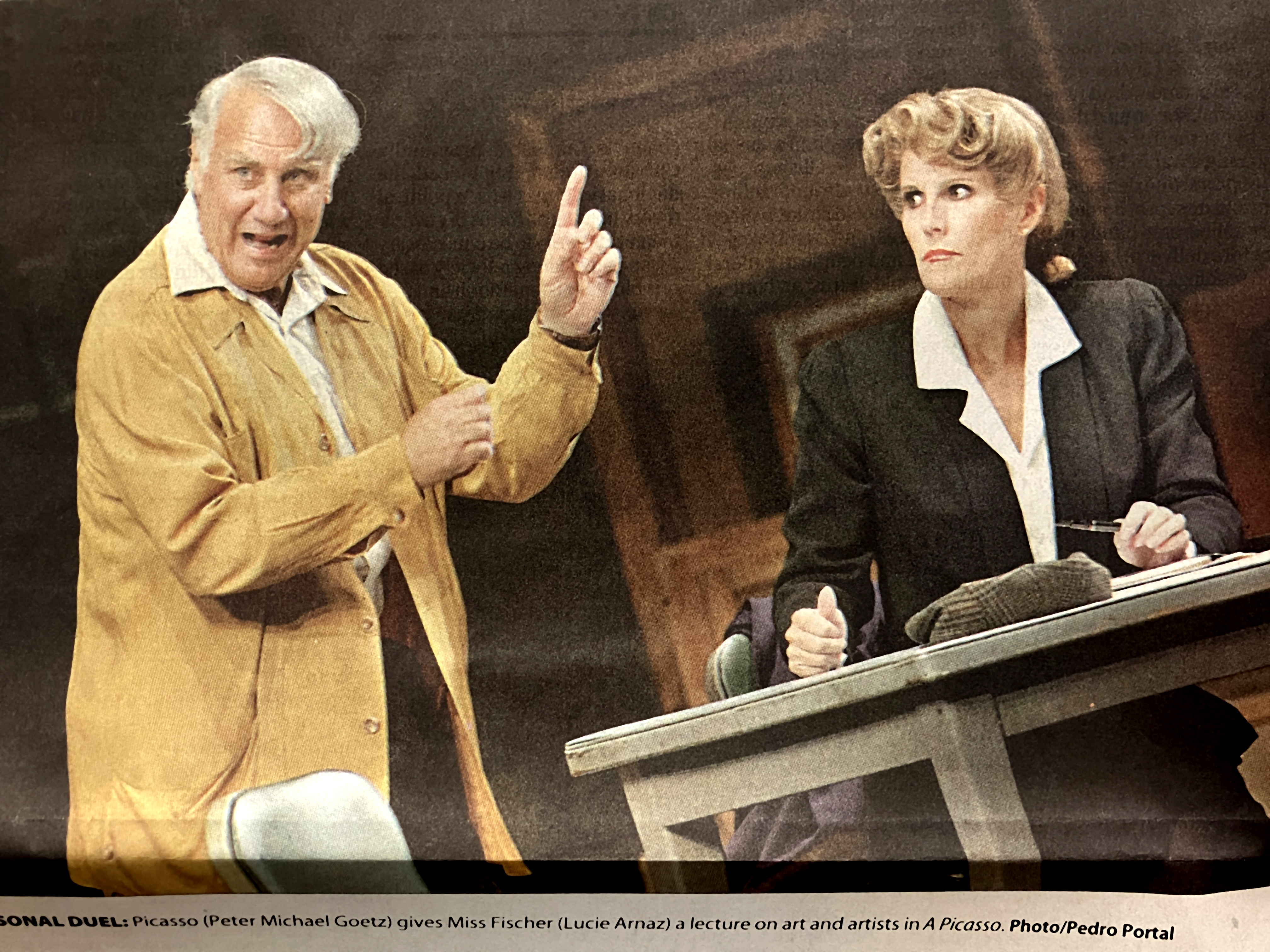“A Picasso” starring Lucie Arnaz and Peter Michel Goetz by Jeffrey Hatcher is a one-act play that revolves around a fictional meeting between the famous artist Pablo Picasso and a young art dealer in Nazi-occupied Paris during World War II.