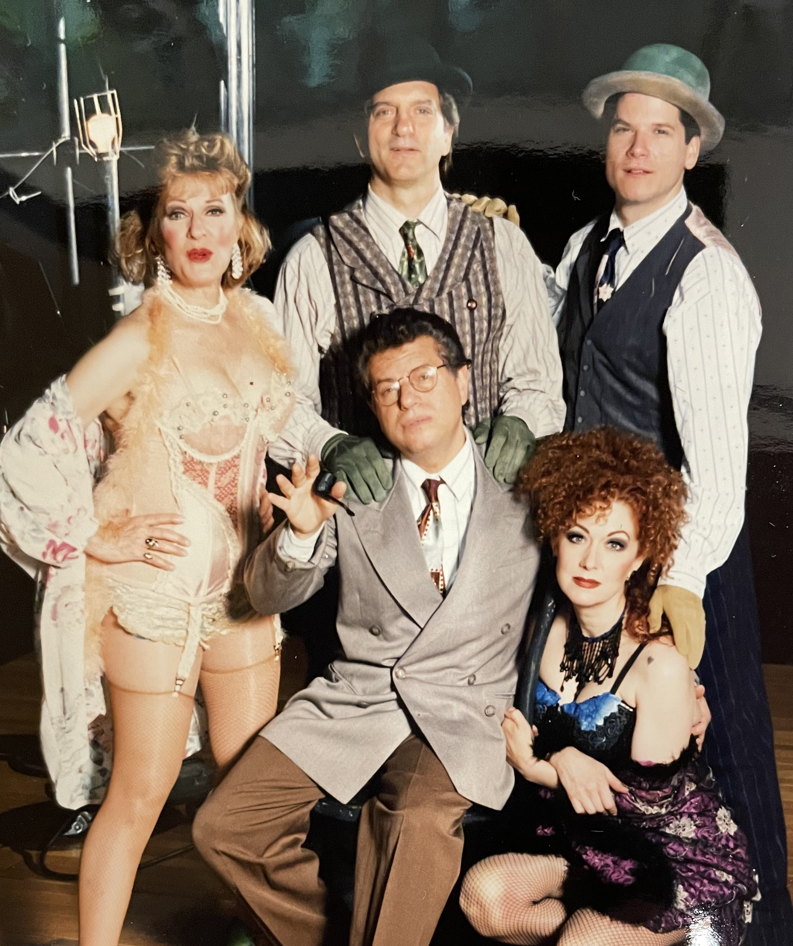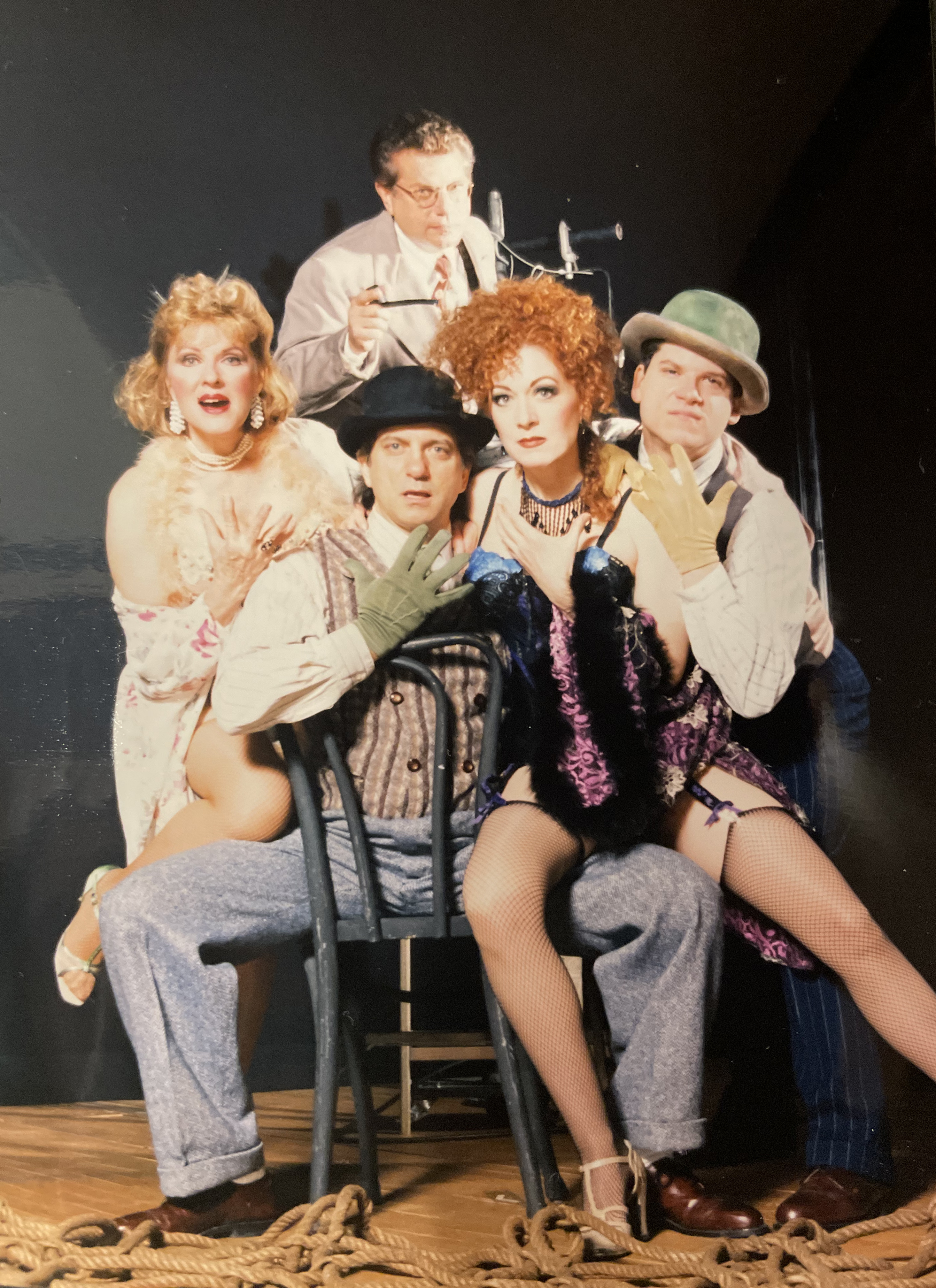 Jack Allison, Director (seated center) with the cast (standing) Joy Franz, Martin Vindovic, Michael Babin, Marilyn Caskey, (back) Mike Burstyn in "Berlin to Broadway with Kurt Weill." This musical chronicles Weill's bittersweet melodies of 1920s Berlin and his Broadway scores of the 1930s and 1940s. It was produced at the Playhouse during the 1997-1998 season.