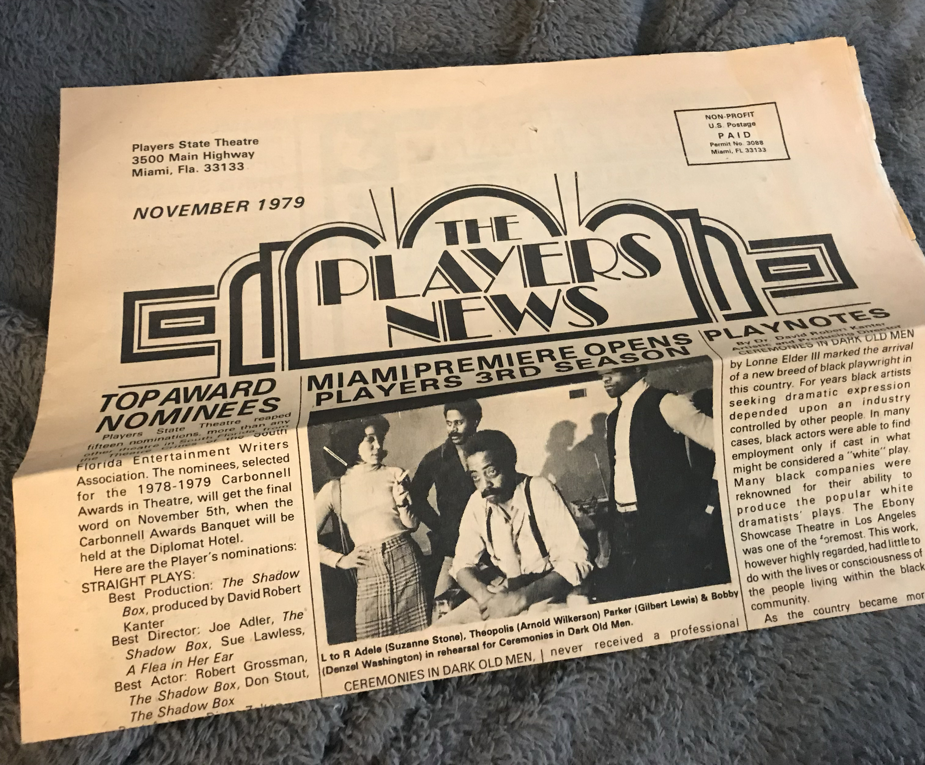 Arnold Wilkerson, Gilbert Lewis, Denzel Washington in Players State Theatre opening production "Ceremonies In Dark Old Men" (1979-1980 season).