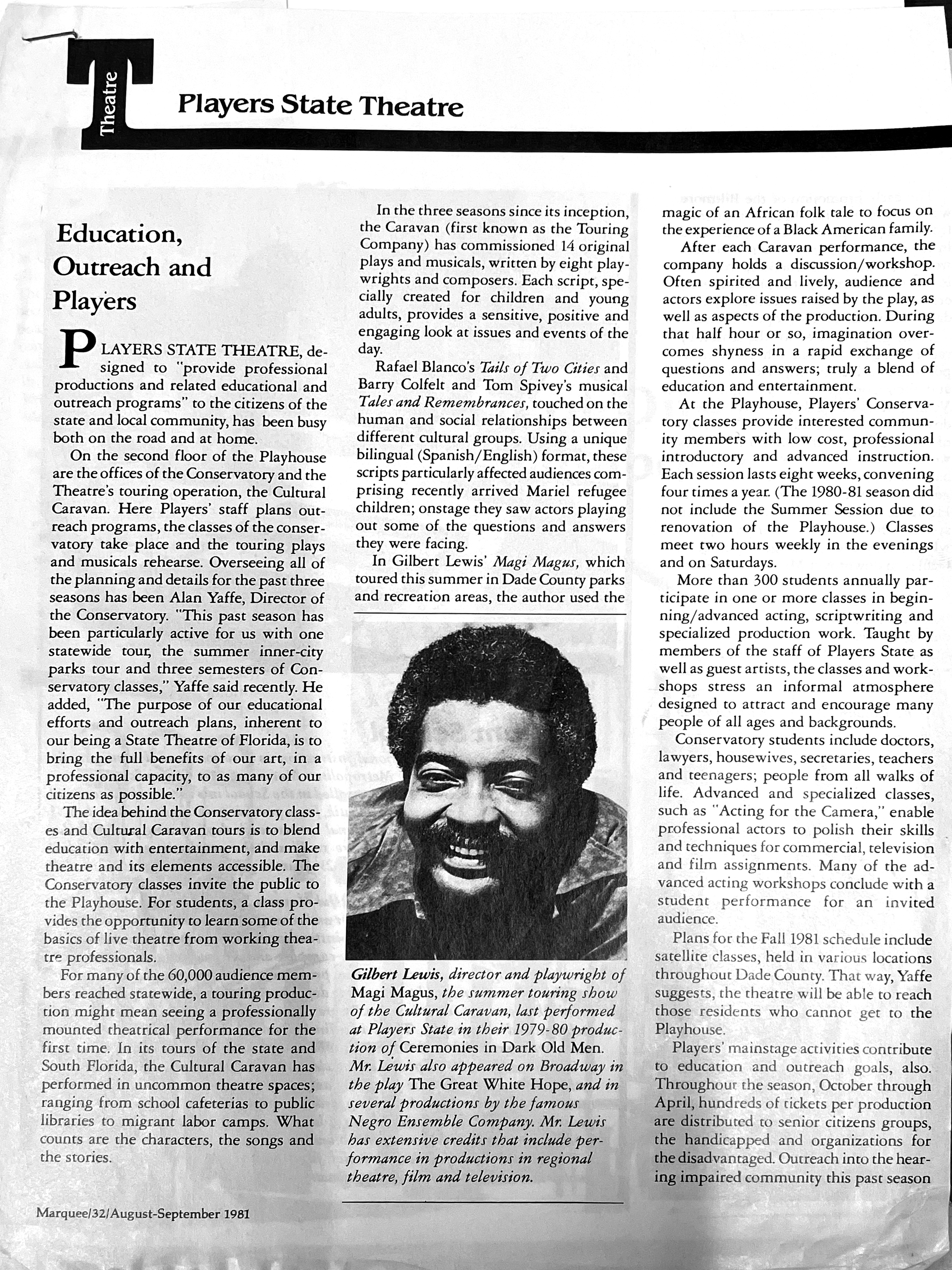 Players State Theatre's Education Programs--Conservatory and Cultural Caravan