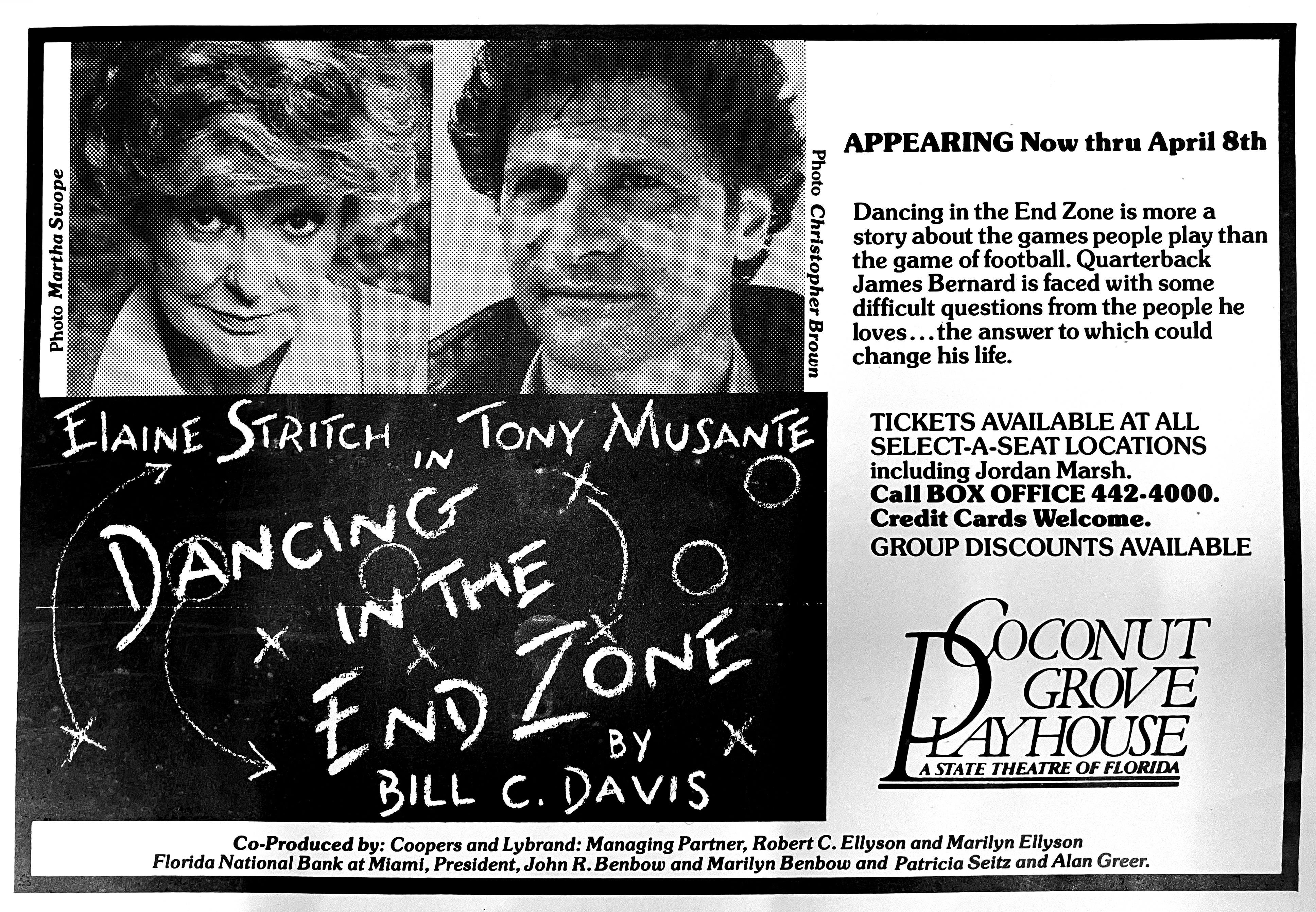 Elaine Stritch and Tony Musante in an advertisement for "Dancing In The End Zone" during the 1983-1984 season.