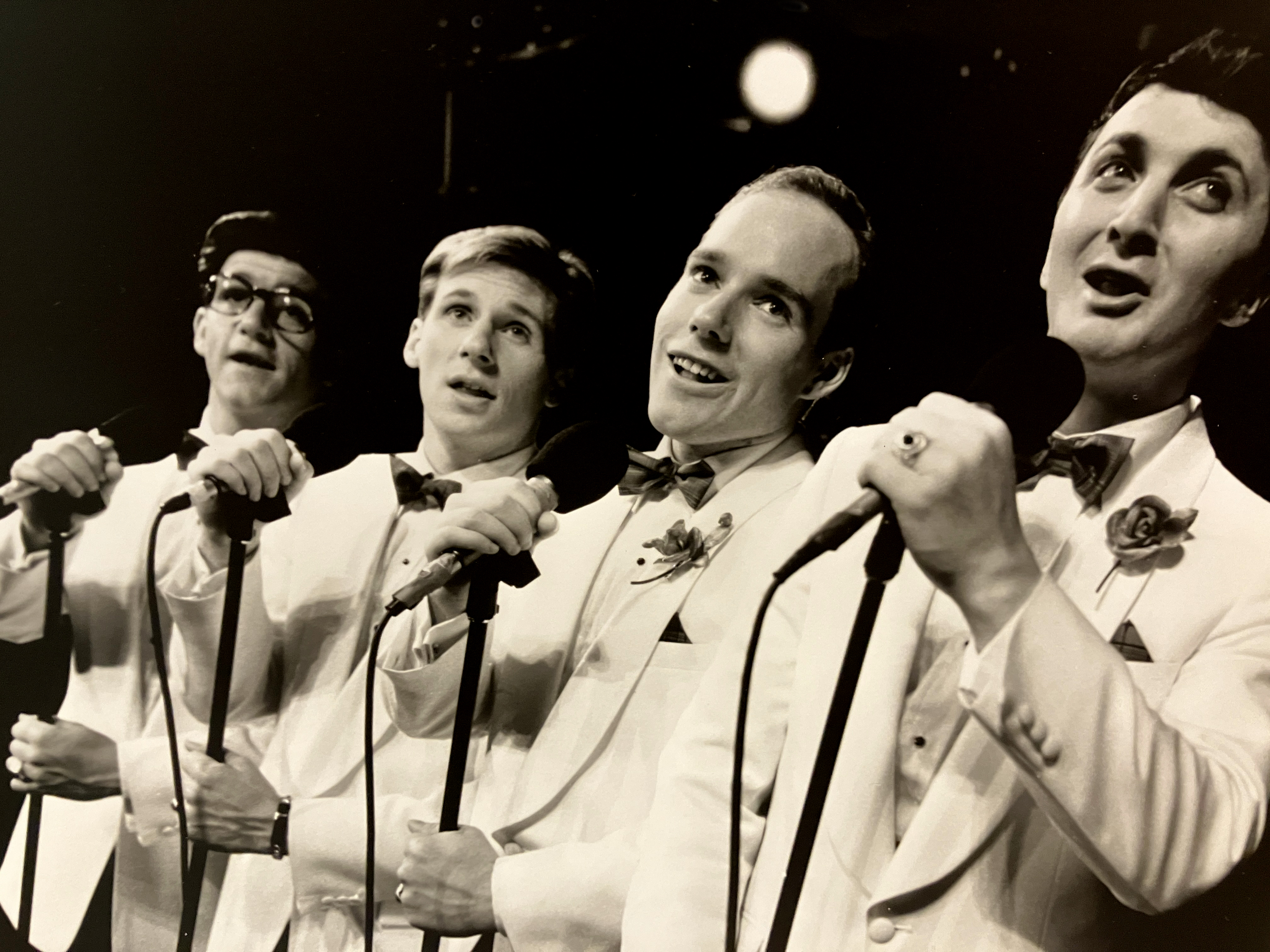 Gregory Jbara, Neil Nash, Michael Winther, and Paul Binotto in "Forever Plaid" during the 1991-1992 season.