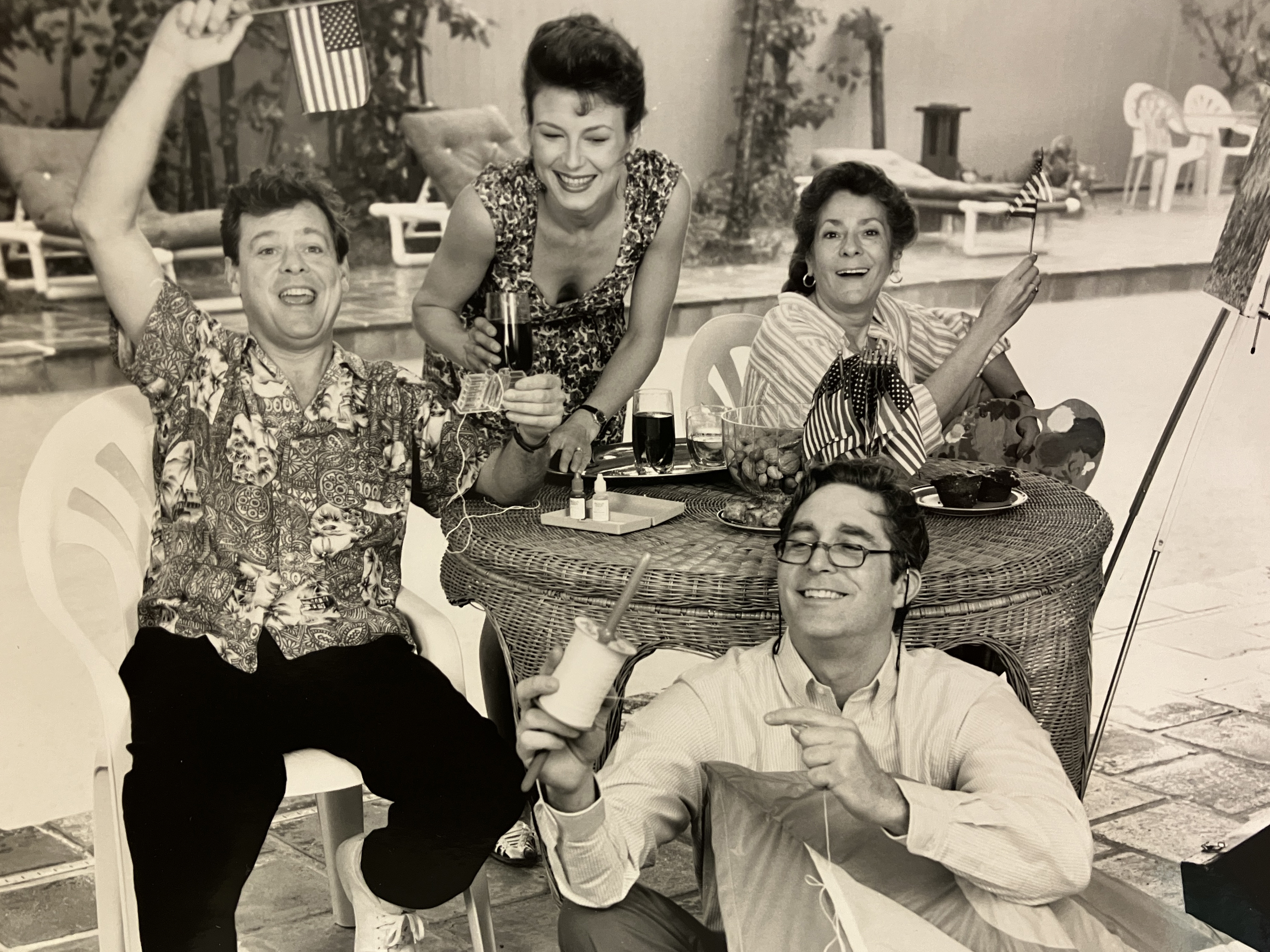 Michael O'Hare (seated), Samuel Maupin, Leslie Hendrix, Judith Delgado in a scene from "Lips Together, Teeth Apart" during the 1992-1993 season.