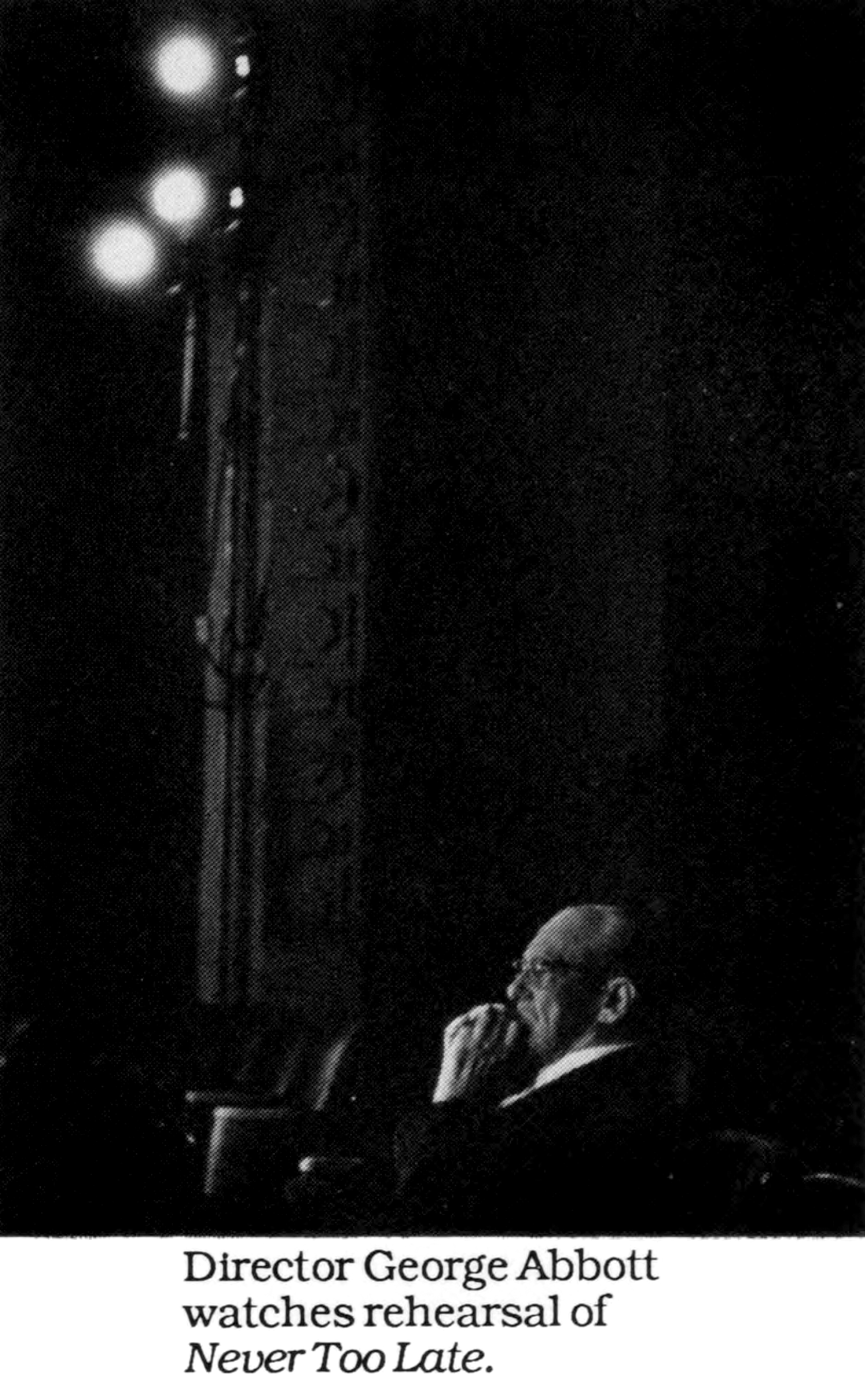 Director George Abbott watches a rehearsal of "Never Too Late" during the 1964-1965 season.