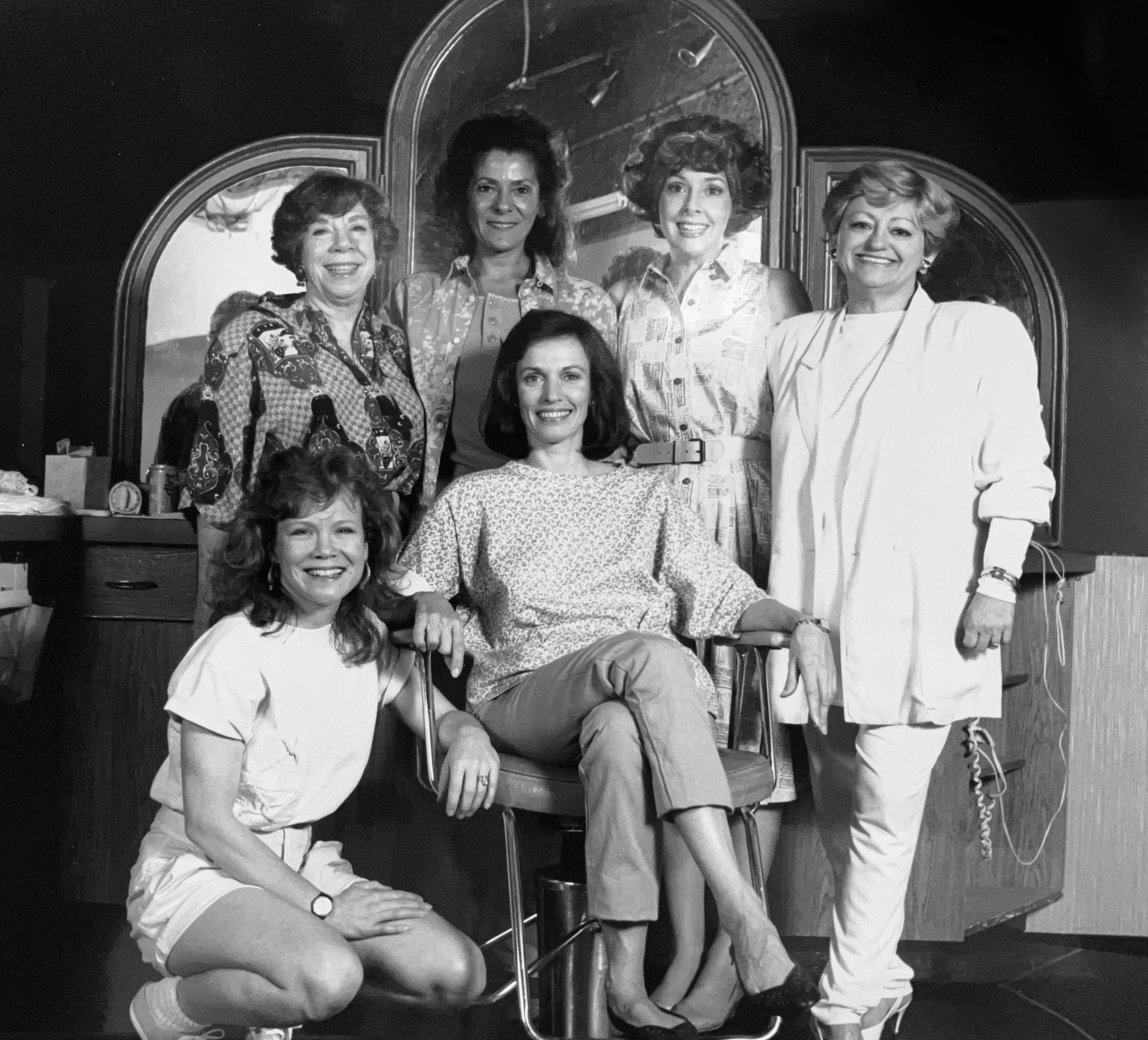 Scene from "Steel Magnolias" during the 1989-1990 season. L- R standing: Bobo Lewis, Judith Delgado, Georgia Engel, Marcia Lewis (seated), Jennifer Parsons, Tandy Cronyn.