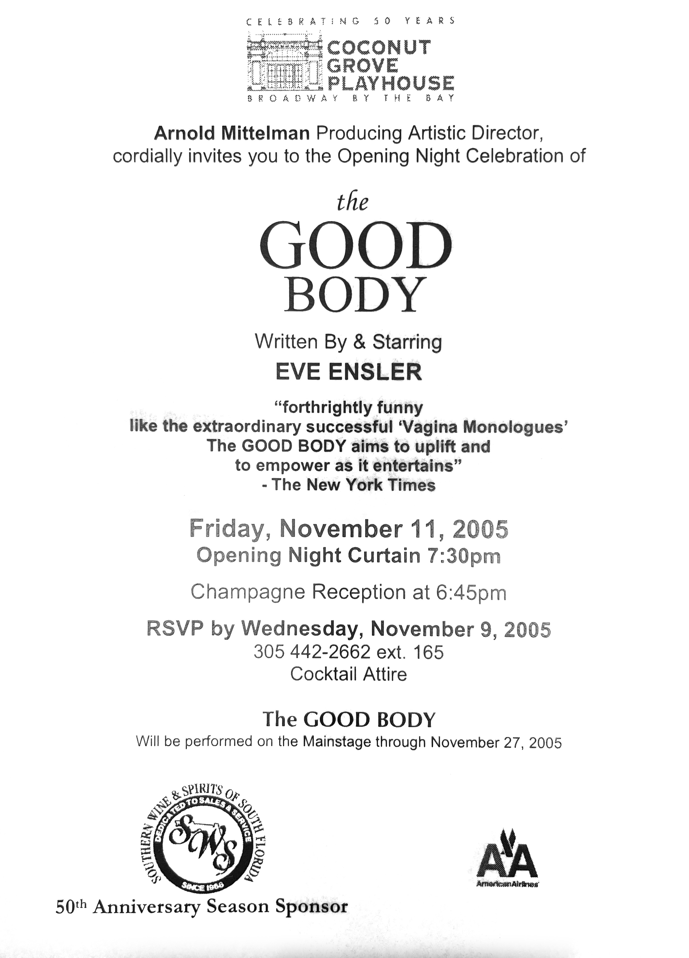 Invitation to the opening night celebration of "The Good Body" ( 2005-2006 season).