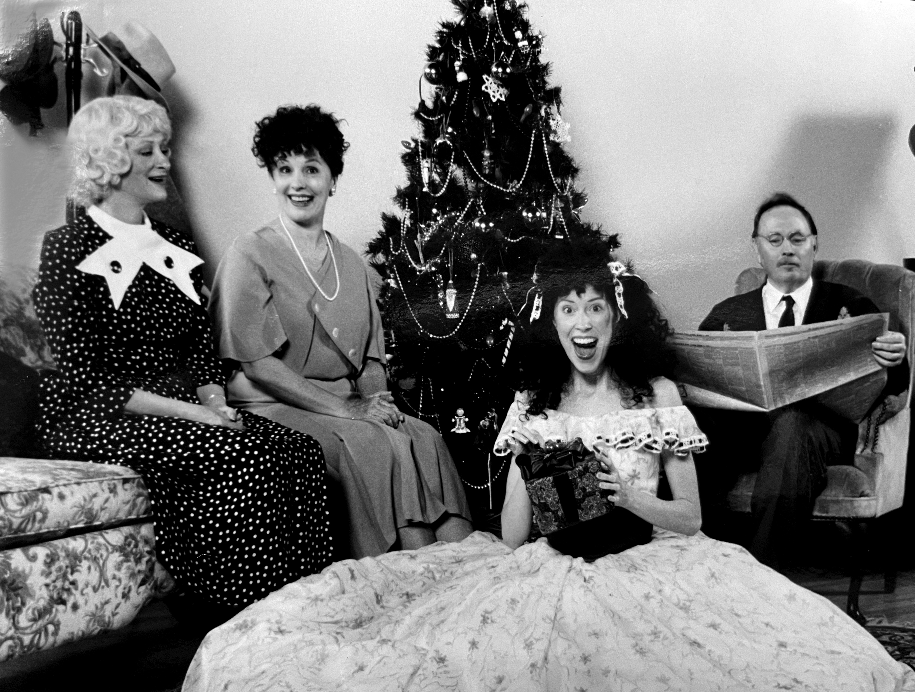 Meet the Freitags: At right, Adolph (Philip LeStrange); in center, Lala (Jonah Marsh); at left, Boo (Donnah Welby); at far left, Reba (Pat Nesbit) in "The Last Night of Ballyhoo"(1998-1999 season).